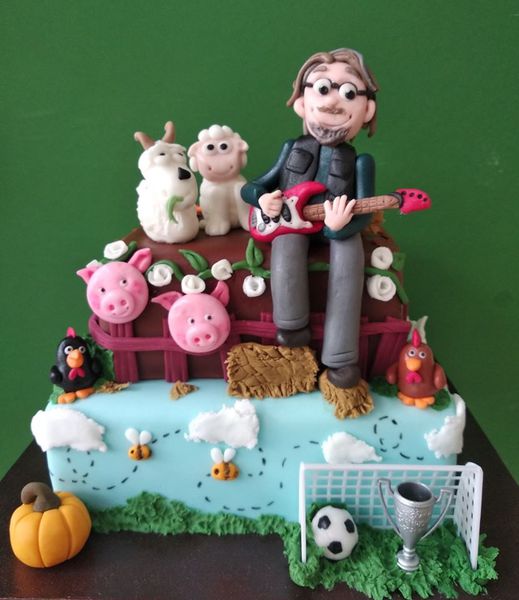 8" round single deep tier fully iced and fully themed eg cycling, sewing kit. Add a 6" top tier incorporated into the theme for £55.