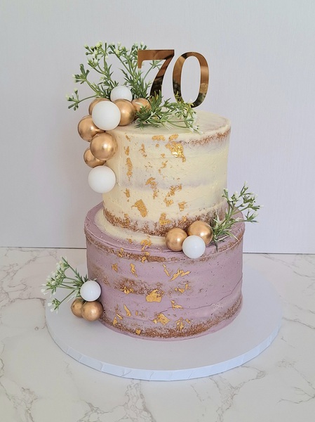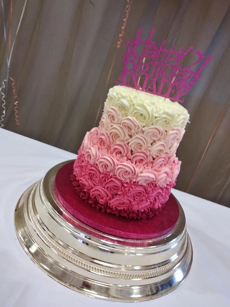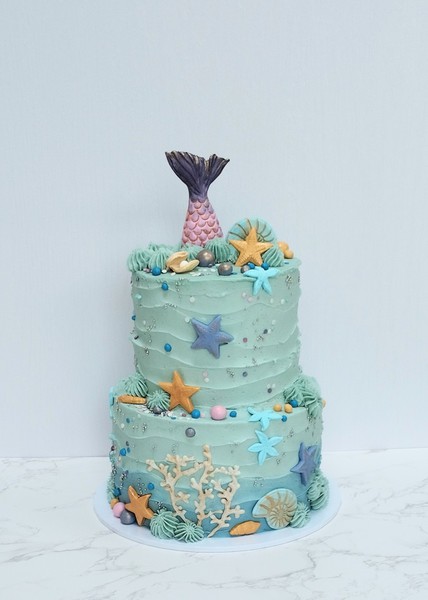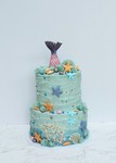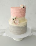 8" round single deep tier with buttercream covering and decoration eg piped flowers, patterns. Add a 6" top tier to match for £30.